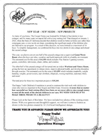 Trigger, Bullet, Roy Rogers, Dale Evans, Roy Rogers Jr., Happy Trails Children's Foundation and RogersDale U.S.A. logo are trademarks of Roy Rogers.